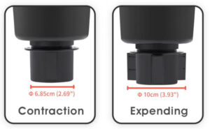 -Spin base with adjustable fixed straps,the base is expendable from 6.85cm-10cm, fit on most in car cup slots