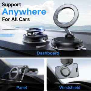 Easy Installation & Broad Compatibility: Installation is simple – clean the mounting surface, apply the adhesive pad, and secure the mount (see installation video in images). Compatible with iPhone 17/16/15/14/13/12 series and all MagSafe devices, plus includes a magnetic ring for non-MagSafe phones. Whether your phone is bare or in a case, it attaches in just one second with one hand. Works with various car models – ideal for dashboard or windshield mounting where surface is flat and clean.