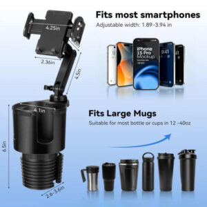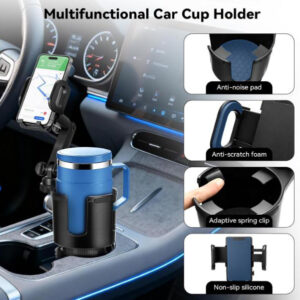 2-in-1 Cup Holder Expander & Phone Holder: Our innovative product combines a sturdy cup holder extender with a reliable phone holder. It not only stabilizes your beverage in a large cup holder, but also provides a safe and perfectly positioned stand for your smartphone, saving you valuable console space and keeping your driving organized
