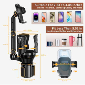 [Cup Car Mount Suitable for High-temperature Climates] Perfect for hot climate areas like AZ and TX. This phone holder for car cup holder eliminates worries about the high temperature melting the adhesive of traditional sticky car mount. It keeps your dashboard clean and tidy; ensuring cup holder phone mount never blocks your view of the road or obstructs your air vent. It is also perfect for use by rear passengers, especially in larger vehicles like SUVs, minivans, and trucks that have cupholders in the back. Our cup holder phone mount makes your trip safe and comfortable, it is a must-have road trip essentials.