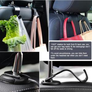 【360° Rotation】Rotate hooks freely to hang items on the front or back of the seat, or tuck them neatly under the headrest when not in use. Save space, keep your car organized, and enjoy complete flexibility wherever you drive.